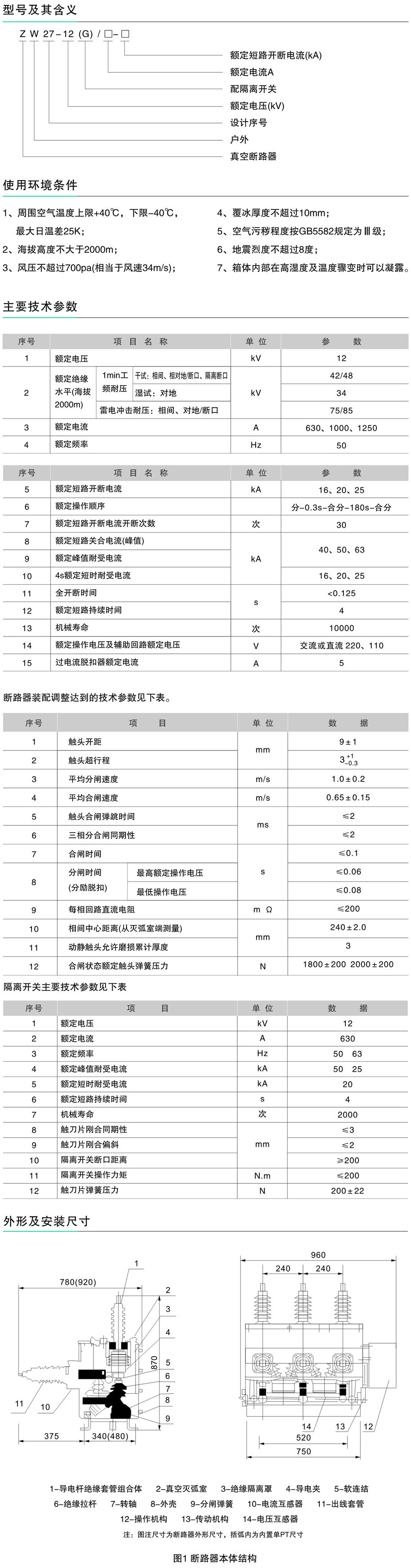 ZW6-12型戶外高壓真空斷路器適用于12KV及以下,交流50HZ的三相電力系統(tǒng)。主要用于農(nóng)網(wǎng)和城網(wǎng)作分、合負(fù)荷電流、過載電流及短路電流之用,也可用于其它類似場所,還可作為城市市區(qū)12KV級電網(wǎng)的分段開關(guān)。