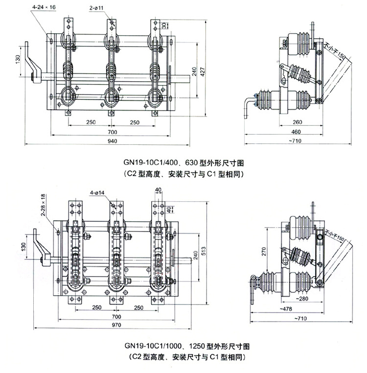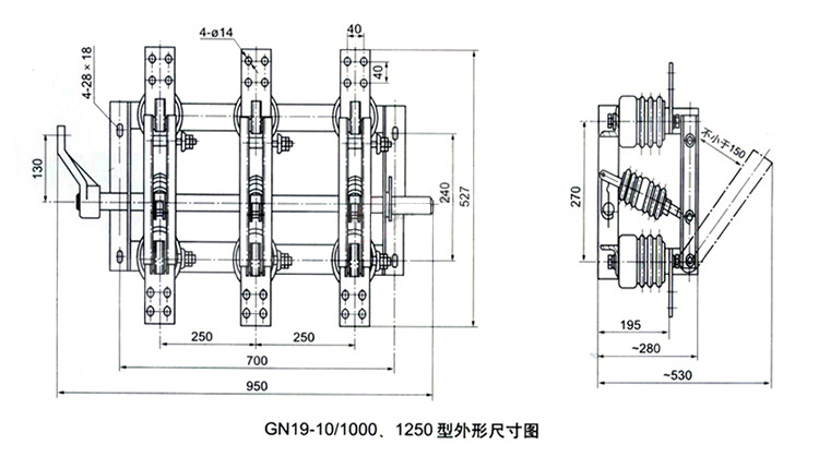 GN19-10 (GN19-10C)系列戶內(nèi)高壓隔離開關(guān)適用于交流5Hz,額定工作電壓6,10kv: 額定工作電流200、630、 1250A 的電力系統(tǒng)中。作為有電壓無負(fù)荷情況下的分?jǐn)啵]合電路的戶內(nèi)開關(guān)設(shè)備使用。此隔離開關(guān)配用CS6-1型手力操動(dòng)機(jī)構(gòu)。