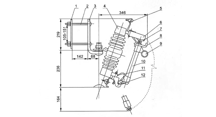 跌落式熔斷器在正常運(yùn)行時(shí),熔絲管借助熔絲張緊后形成閉合位置。當(dāng)系統(tǒng)發(fā)生故障時(shí),故障電流時(shí)熔絲迅速熔斷,并形成電弧,消弧管受電弧灼熱,分解出大量的氣體,使館內(nèi)形成很高壓力,并沿管道形成縱吹,電弧被迅速拉長而熄滅。熔絲熔斷后,下部動(dòng)觸頭失去張力二下翻,鎖緊機(jī)械,釋放熔絲管,熔絲管跌落,形成明顯的開斷位置。當(dāng)需要拉負(fù)荷時(shí),用絕緣桿拉開動(dòng)觸頭,此時(shí)主動(dòng)、靜動(dòng)觸頭仍然接觸,繼續(xù)用絕緣桿拉動(dòng)觸頭,輔助觸頭也分離,在輔助觸頭之間產(chǎn)生電弧,電弧在滅罩狹縫中被拉長,同時(shí)滅弧罩產(chǎn)生氣體,在電流過零時(shí),將電弧熄滅。